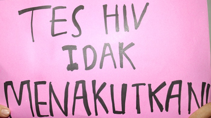 Dengan diliputi rasa was-was dan ragu, ibu Bonita mendatangi klinik. Tiba di klinik, dia melirik ke kanan dan ke kiri dan merasa takut bila sekiranya menemui orang yang dia kenal atau mungkin ada pekerja klinik yang mengenalinya. Dia menguatkan diri dan “berkata aku harus berani, demi anakku”. Ibu Bonita membuat poster di bawah ini bersama sekelompok ibu positif di kota Palembang dengan dengan pesan “Tes HIV tidak menakutkan” untuk mengajak ibu-ibu lainnya berani menjalani tes HIV.